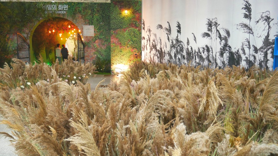 고양꽃전시관 실내에서는 울창한 숲과 같이 연출되는 숲의 정원과 다양한 가드닝 소품으로 연출되는 치유의 정원, 초대형 새장으로 연출되는 포토존 등이 마련되어 있습니다. 이렇게 화려하고 다양한 화훼장식이 연출되는 플라워 파티공간들과 더불어, 실내 동선을 따라 이동하면 '화예인의 화원'에 진입하여, 다방면에서 활동하고 있는 다양한 화예작가와 국내 화예단체의 작품들도 만나볼 수 있는데요,