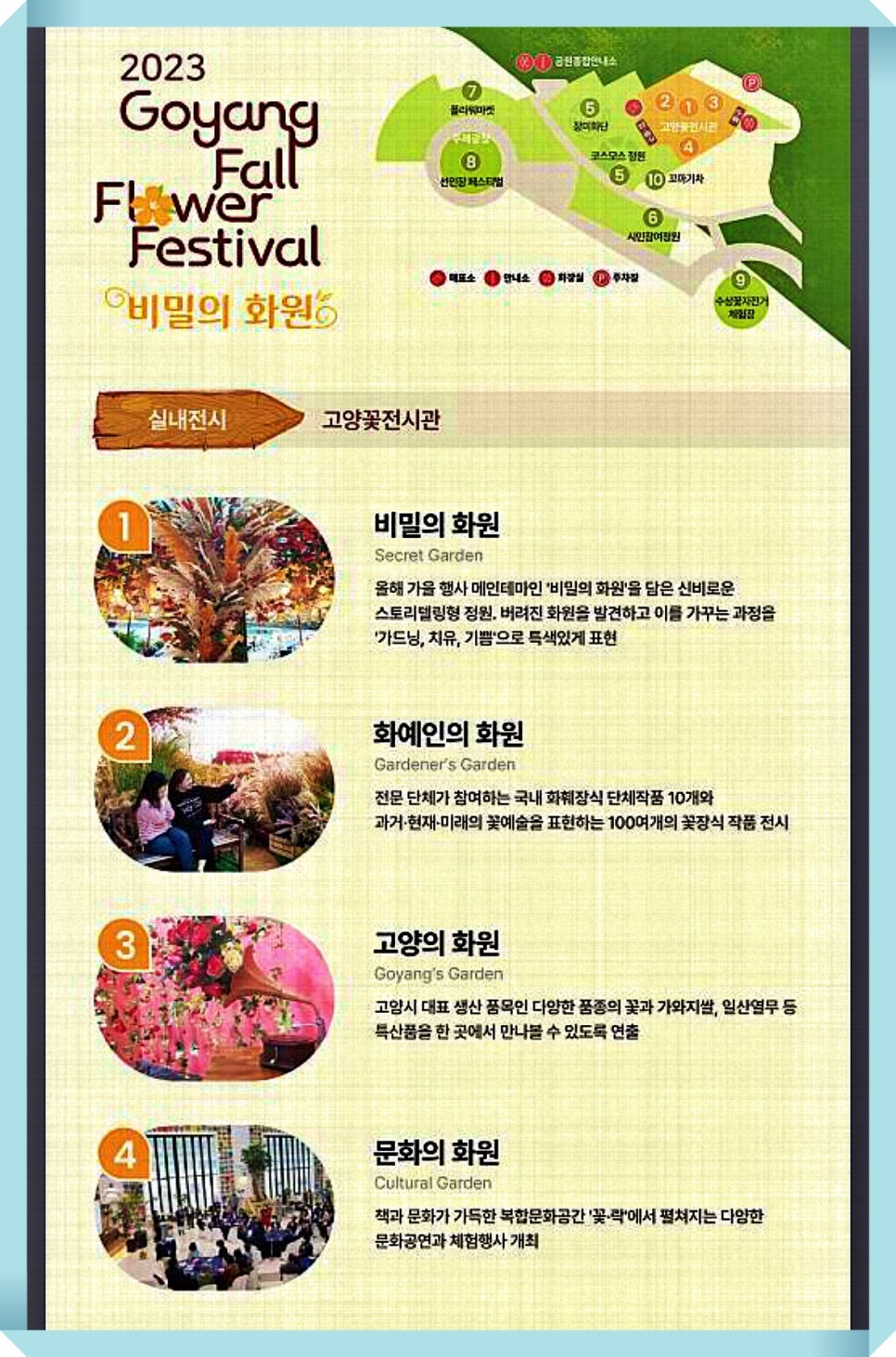 - 특별전시 '비밀의 화원', 화예인의 화원, 고양의 화원, 문화의 화원