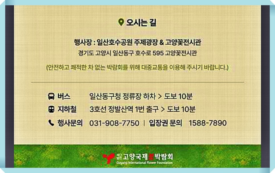 ● 위치 경기도 고양시 일산동구 호수로 595 고양꽃전시관