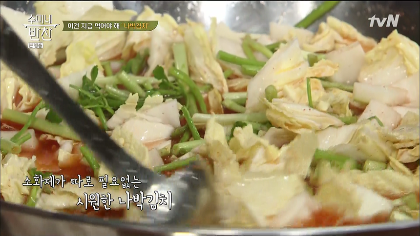 지금까지 나박김치 맛있게 담그는법 황금레시피를 소개해 드렸습니다. 옛말에 ‘자기 전에는 무를 먹고, 아침에 일어나서는 생강을 먹어라’라는 말이 있습니다. 무의 매운맛은 성질이 서늘해서 기운을 하강시키는 하기(下氣) 작용을 하기 때문에, 저녁에 먹는 것이 좋다는 뜻이예요. 특히 저녁에 먹은 무는 소화를 촉진해 속을 편안하게 하고, 밤사이 기침 가래가 끼는 것까지 막아준다고 하네요.