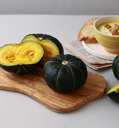 ▶ 준비물: 단호박 1통(약 1kg), 칼, 도마, 숟가락, 찜기 또는 전자레인지