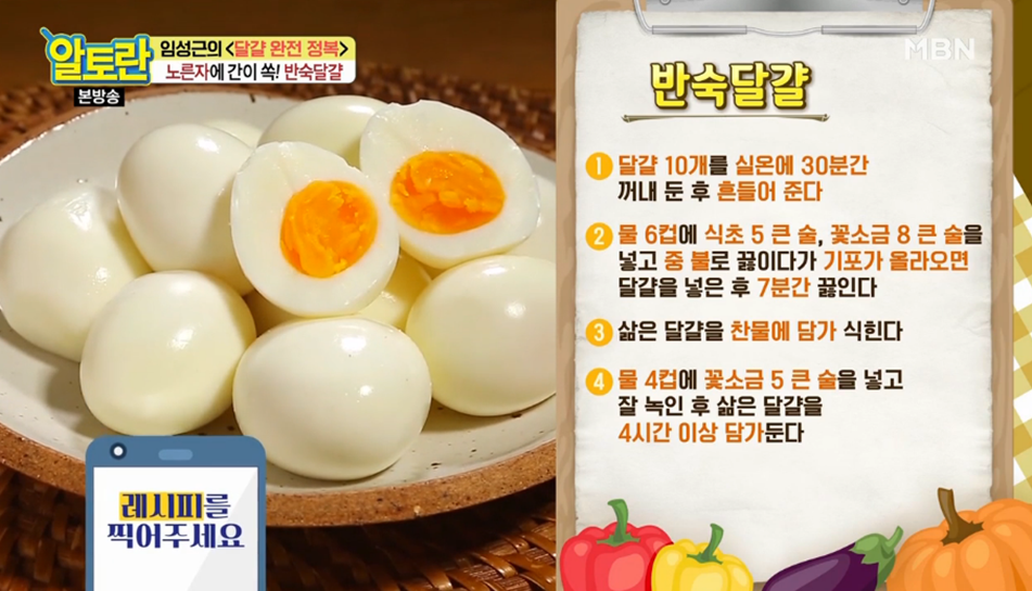 계란 껍질을 까지 않고 4시간 이상 담가놓는 이유는 삼투압현상 때문에 간이 다 배어서 굳이 소금을 찍어 먹지 않아도 간이 되어 있는 계란 반숙을 만들 수 있기 때문입니다.