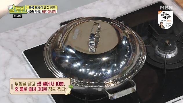 7. 뚜껑을 닫고 센불에서 10분, 중불에서 30분간 쪄주세요. 센불 10분은 수분공급, 중불 30분은 부드럽게 만드는 역할을 해요.