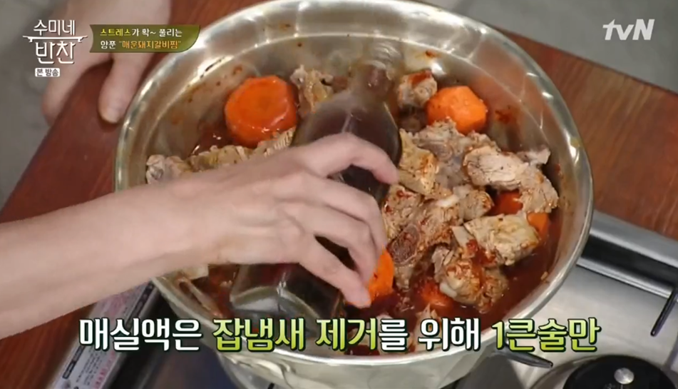 9. 잡내 제거를 위해 매실액 1큰술도 넣어 주세요.