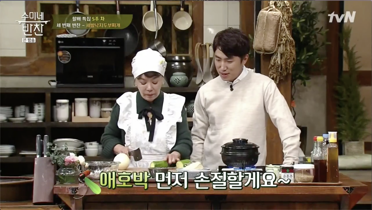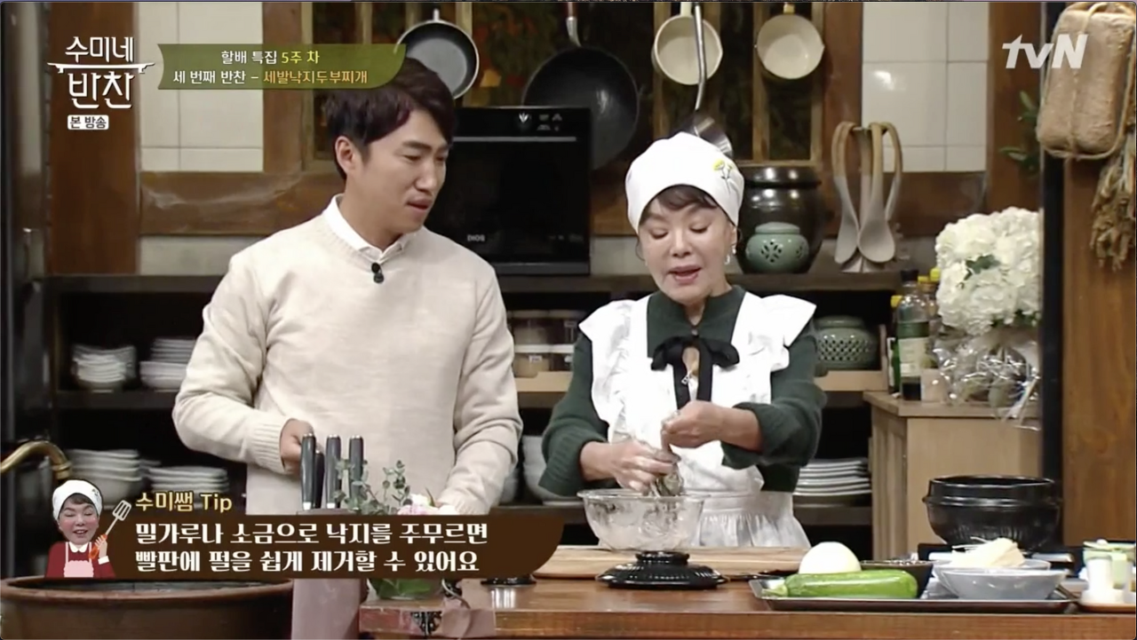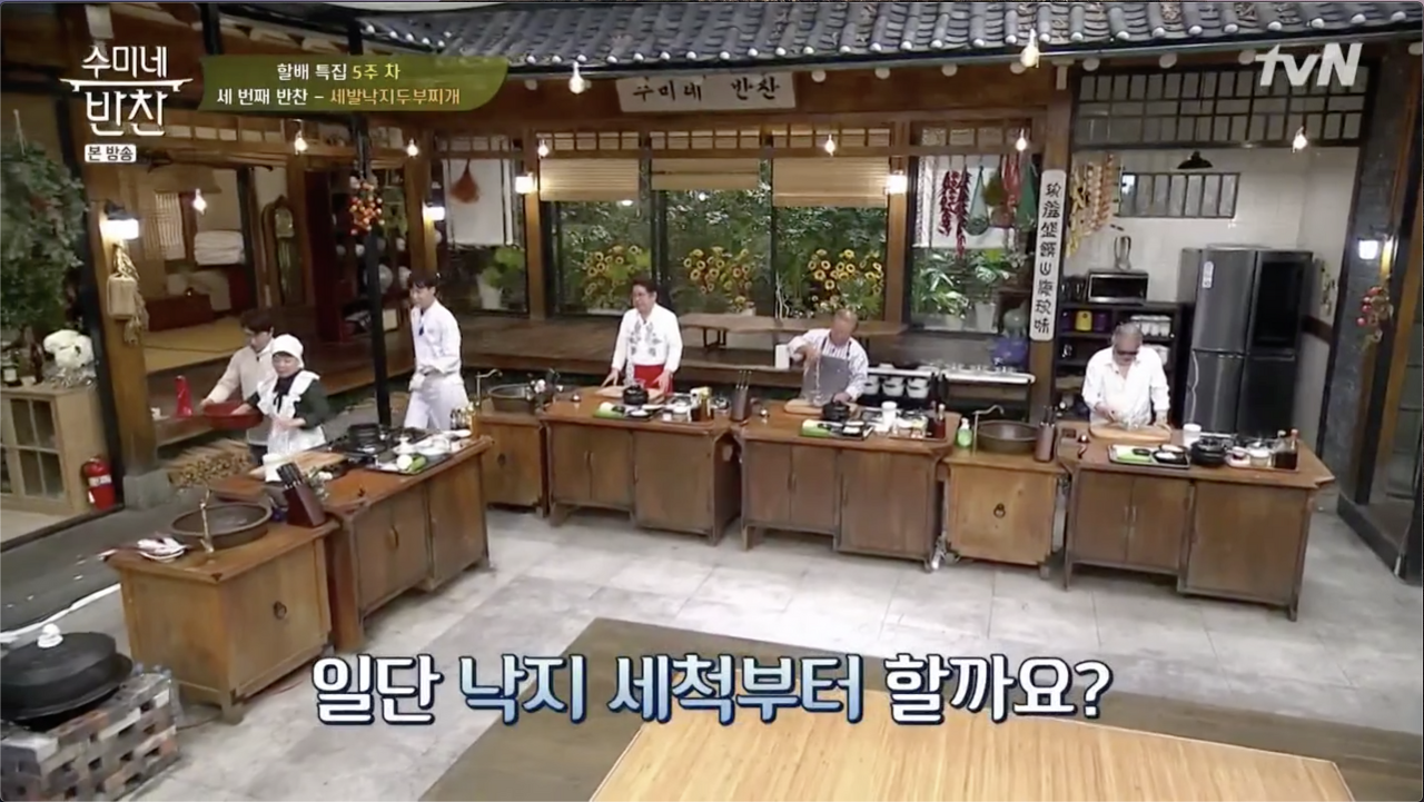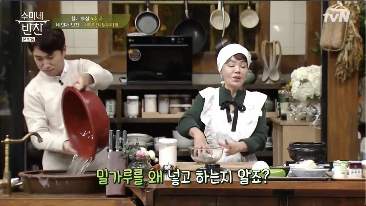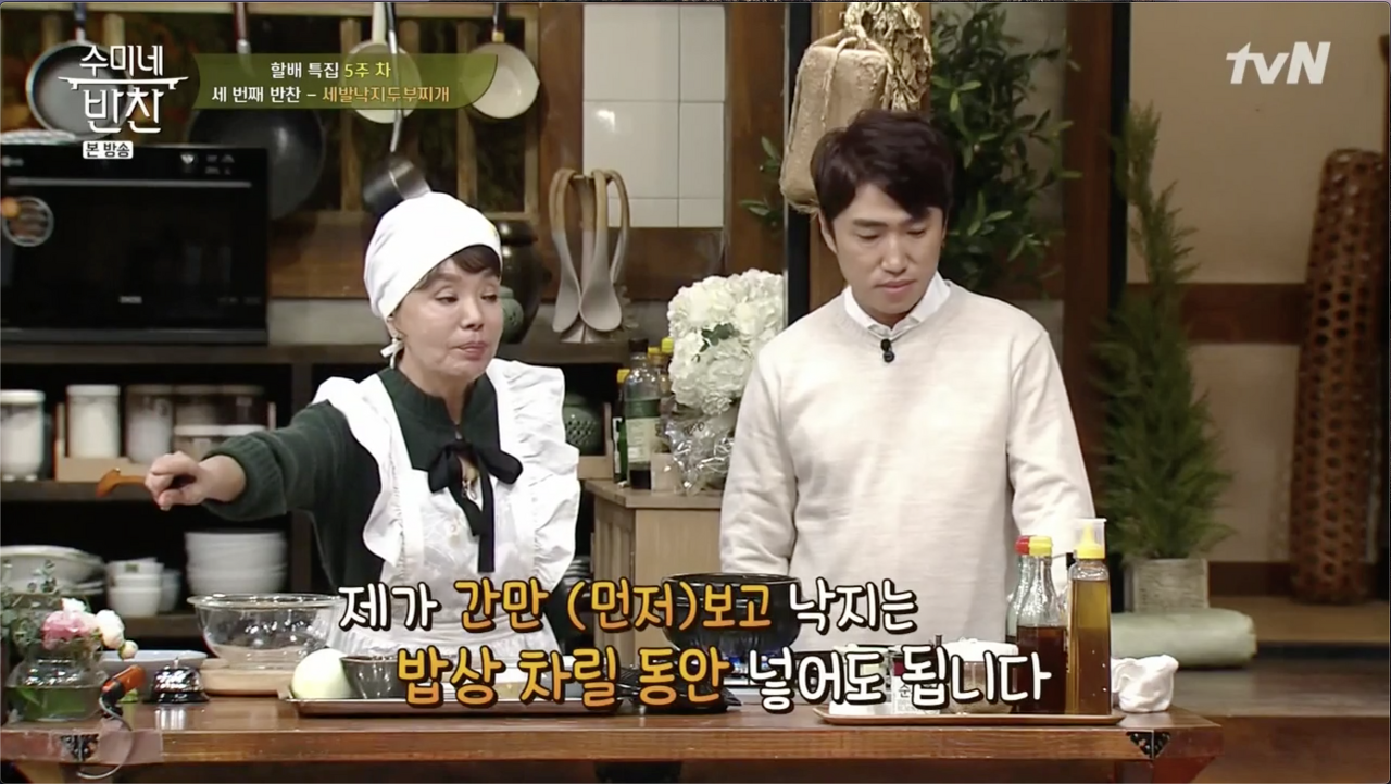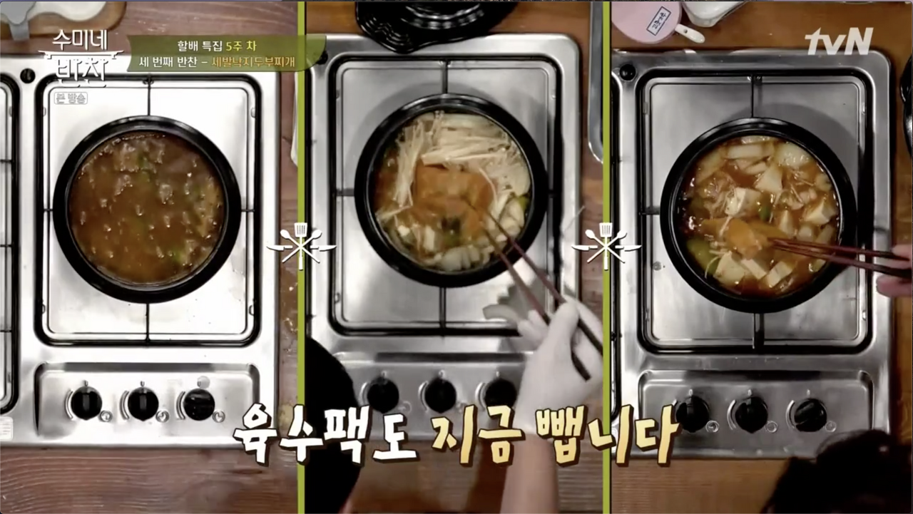 13. 마지막으로 국물 간을 보는데 참고로 낙지는 아직 넣는 것이 아니구요, 밥상차릴 동안 넣어도 된다고 해요. 또한 낙지 대가리는 먹물이 나와서 안 자른다고 하시네요.