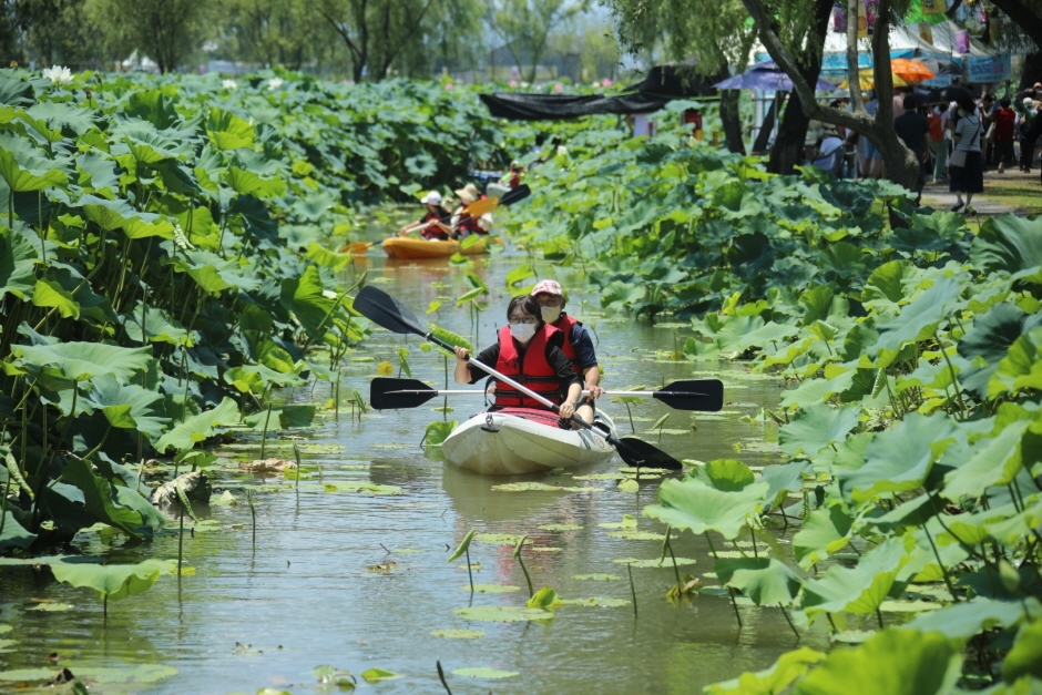 ● 연지 카누탐험: 연지 속 연꽃을 관람하며 즐기는 카누 체험입니다. 카누 동선에 이벤트 요소를 가미하여 부가적인 재미요소를 제공합니다. 7월 13일부터 16일까지 궁남지 연지에서 체험할 수 있습니다.