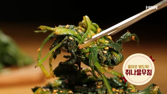 또한 취나물은 칼륨 함량이 대단히 많은 알칼리성 식품으로 체내의 염분을 몸 밖으로 배출해내는 효능이 있어 혈압을 안정시키거나 동맥경화로 인한 질병을 예방하는 데도 도움됩니다. 또 비타민B도 풍부한데 봄철에 불면증이 생기는 사람은 비타민B를 섭취해야 수면을 관장하는 세로토닌 기능이 원활해져 좋은 수면을 취할 수 있으니 취나물이 도움 됩니다.