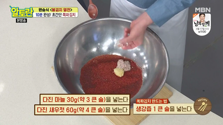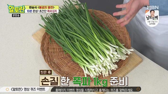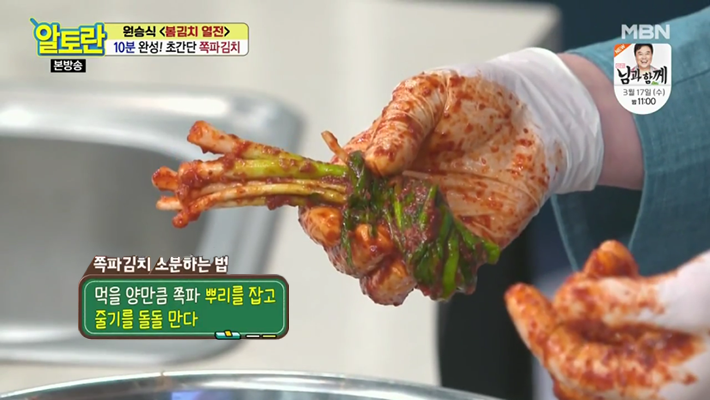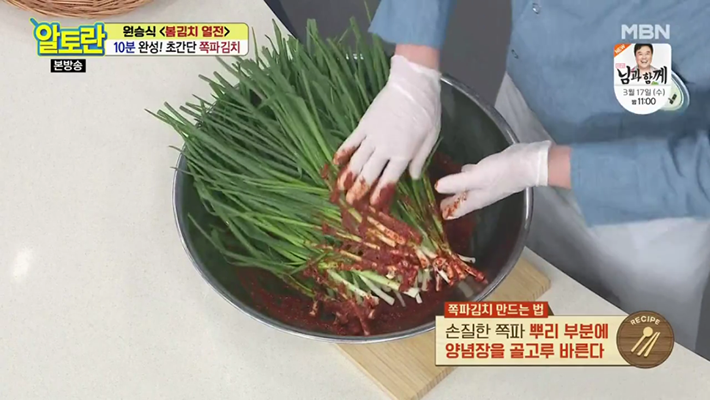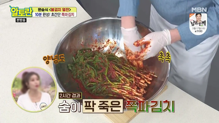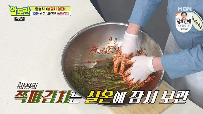 4. 알토란 원승식 파김치 맛있게 담그는법에서는 절이지 않고 만드는 쪽파김치 레시피를 알려주실건데요, 절이지 않고, 기본적인 양념에 쪽파를 버무려서 만든다고 합니다.
