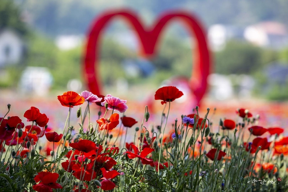 자연 경관이 뛰어난 마을에 매료되어 귀농한 마을주민이 2005년, 300평의 작은 밭에 취미삼아 심었는데 의외로 많은 관람객들이 몰려들어 각광을 받게 되어 2007년부터 축제"로 시작하였고, 올해 제16 꽃양귀비축제를 개최하게 되었습니다.